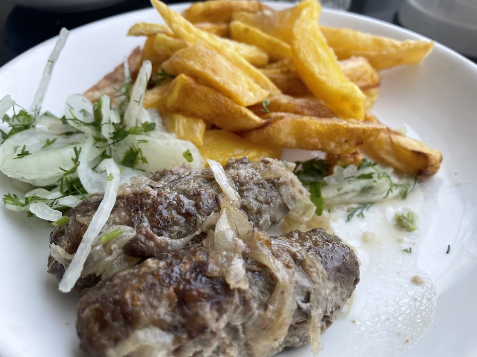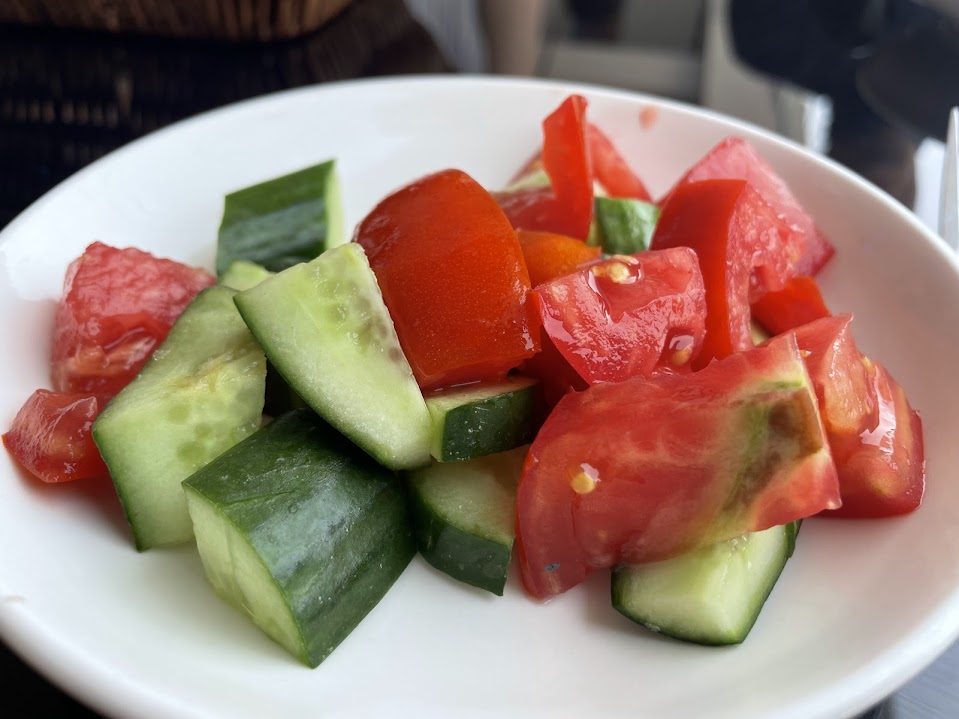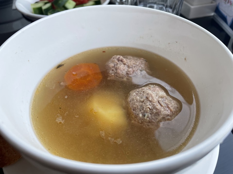 メインはタジキスタン料理とのことでしたが、見た目はハンバーグのようなものです。前日の夜にウズベキスタンで食べた「Ground Beef(牛挽肉)」に似ていました。