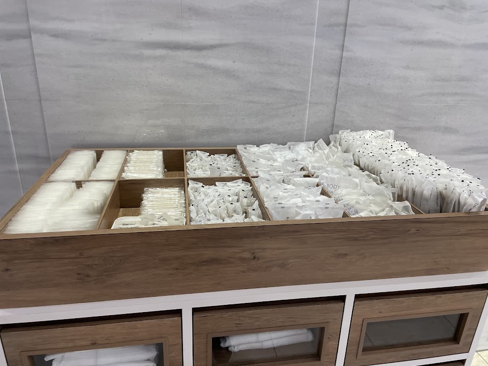 歯ブラシ、くしなどの消耗品やナイトウェアは、お部屋には設置されていません。フロント横にあるアメニティバーにすべて集められていますので、忘れずに必要な分だけ取っていきましょう。