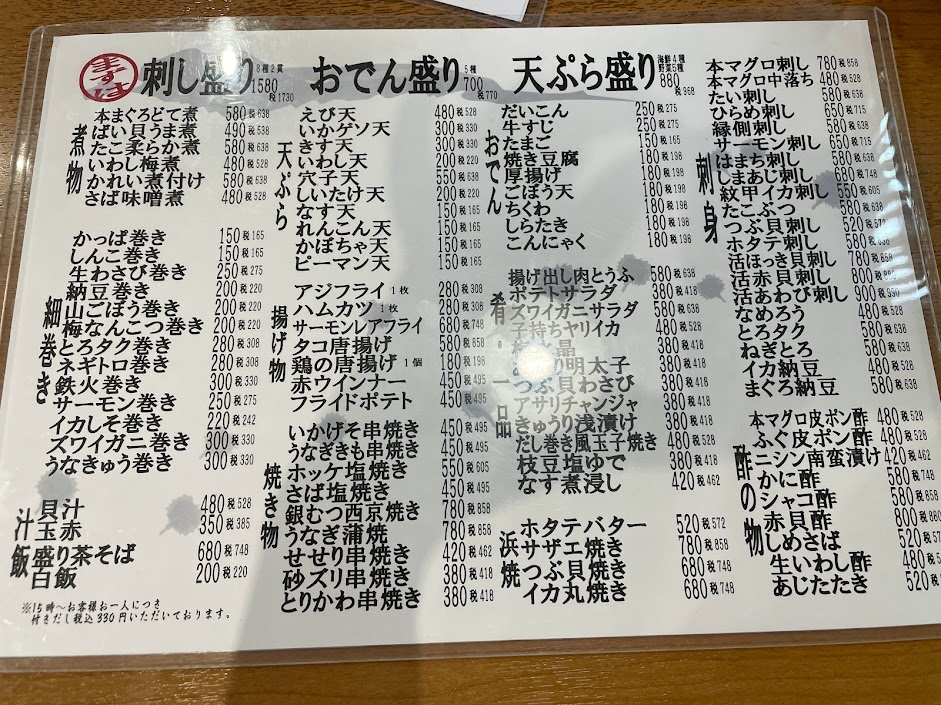 - ここがおすすめ! 毎日市場から仕入れる新鮮な魚介が自慢。おつまみは180円〜とリーズナブル!お酒好きにはたまらないサッポロラガー「赤星」が置いてあるのも嬉しいポイントです。