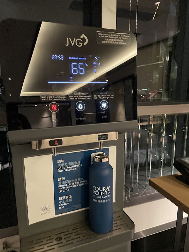 自分の好きなタイミングで、好きなだけ冷たいお水を補充できるので、お水をたくさん飲む私たちにはむしろありがたい仕組みでした。プラスチックゴミを出さないという取り組みも、現代的で素敵ですよね。
