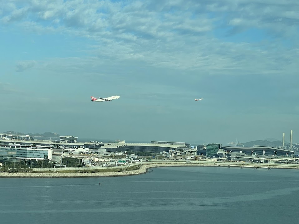 一番リーズナブルなお部屋を予約していたのですが、嬉しいことにオーシャンビューへアップグレード。窓からは香港国際空港から飛び立つ飛行機が間近に見えて、夫婦で大興奮の滞在になりました。