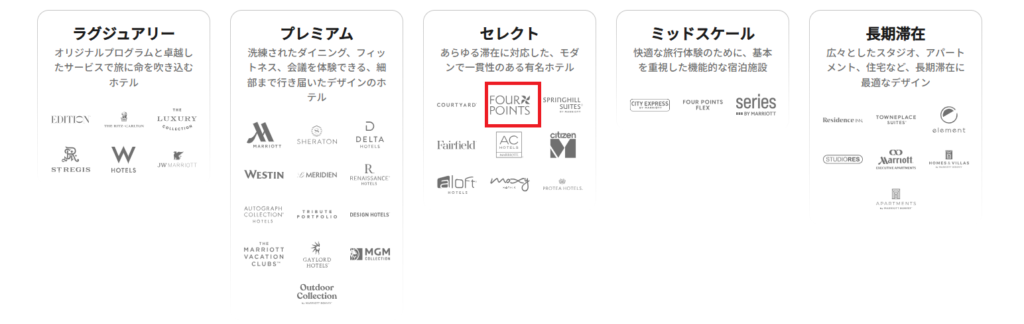フォーポイントバイシェラトンはマリオット系列の中でも「セレクト」タイプに位置しています。