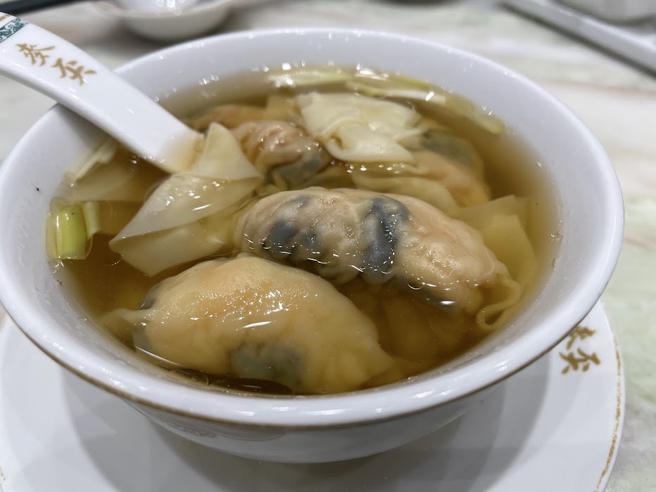 ・世家雲呑麺(海老ワンタン麺):麺の下に隠れたワンタンと、上品な出汁が体に染み渡ります。