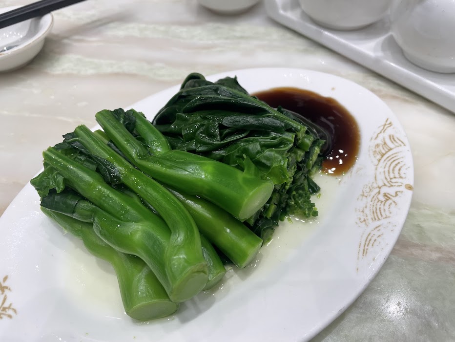 ・茹で野菜(オイスターソース添え):港の食事に欠かせない「芥蘭(ガイラン)」などの青菜。シャキシャキの食感で、お肉や麺の合間のリセットに最適です。