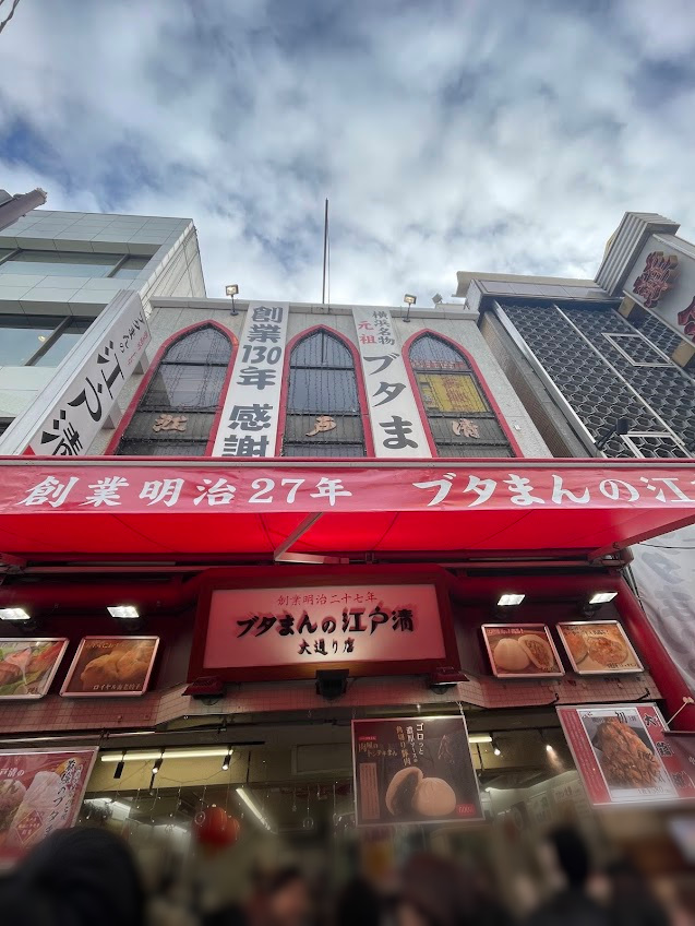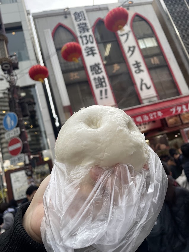「中華街のブタまんといえばここ!」という有名店。手に持つとずっしり重く、ふかふかの生地を割ればジューシーな肉汁が溢れます。初めての中華街、このボリュームには驚きました!