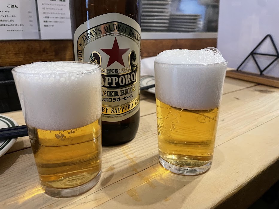 「横浜、最初から飛ばしすぎじゃない?」と嬉しい悲鳴を上げつつも……やっぱり最初はビール!大好きなサッポロラガー「赤星」で乾杯です!