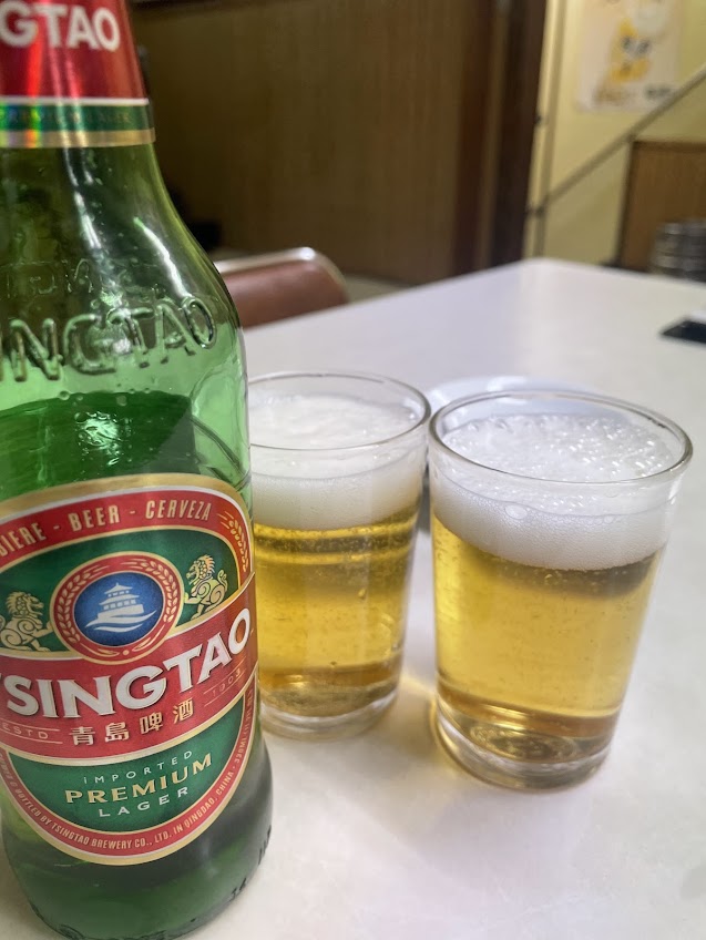 中華街であれだけ点心を食べた後でも、この餃子は別腹です。モチっとした皮から肉の旨味がじゅわっと口中に溢れます。餃子を頬張り青島ビールで流し込む。青島ビールの爽やかさと餃子の組み合わせ、まさに至福です。