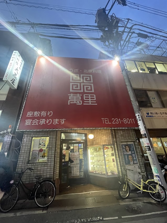 昭和24年創業、野毛の街と共に歩んできた老舗「北京料理 萬里(ばんり)」の暖簾をくぐります。「餃子発祥の店」とも言われるレジェンド的な存在です。